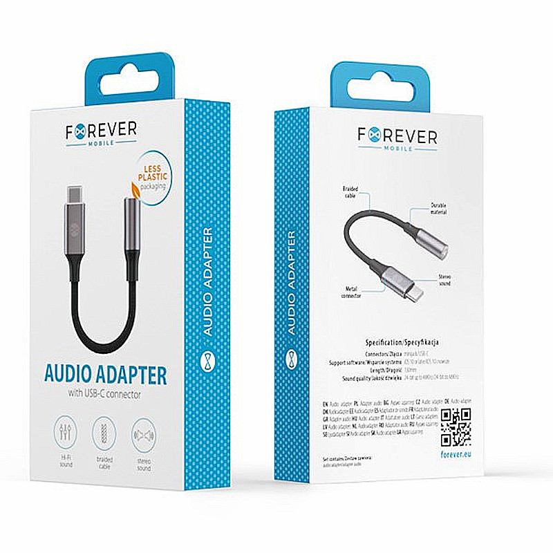 Kábel USBC-JACK3,5st zásuvka čierny 13cm FOREVER AJC-01