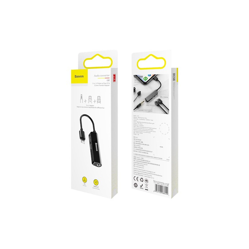 Kábel IPHONE-JACK3,5st+napájanie 3v1 BASEUS L52 BK