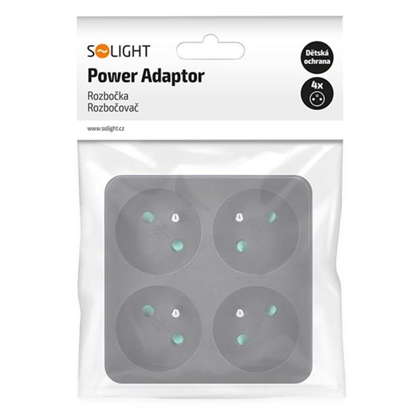 Rozdvojka SOLIGHT P108B čierna (4xgula piamy štvorec)