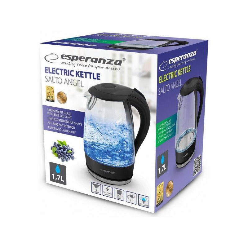 Kanvica rýchlovarná ESPERANZA EKK011K BK 1,7L GLAS Salto Angel