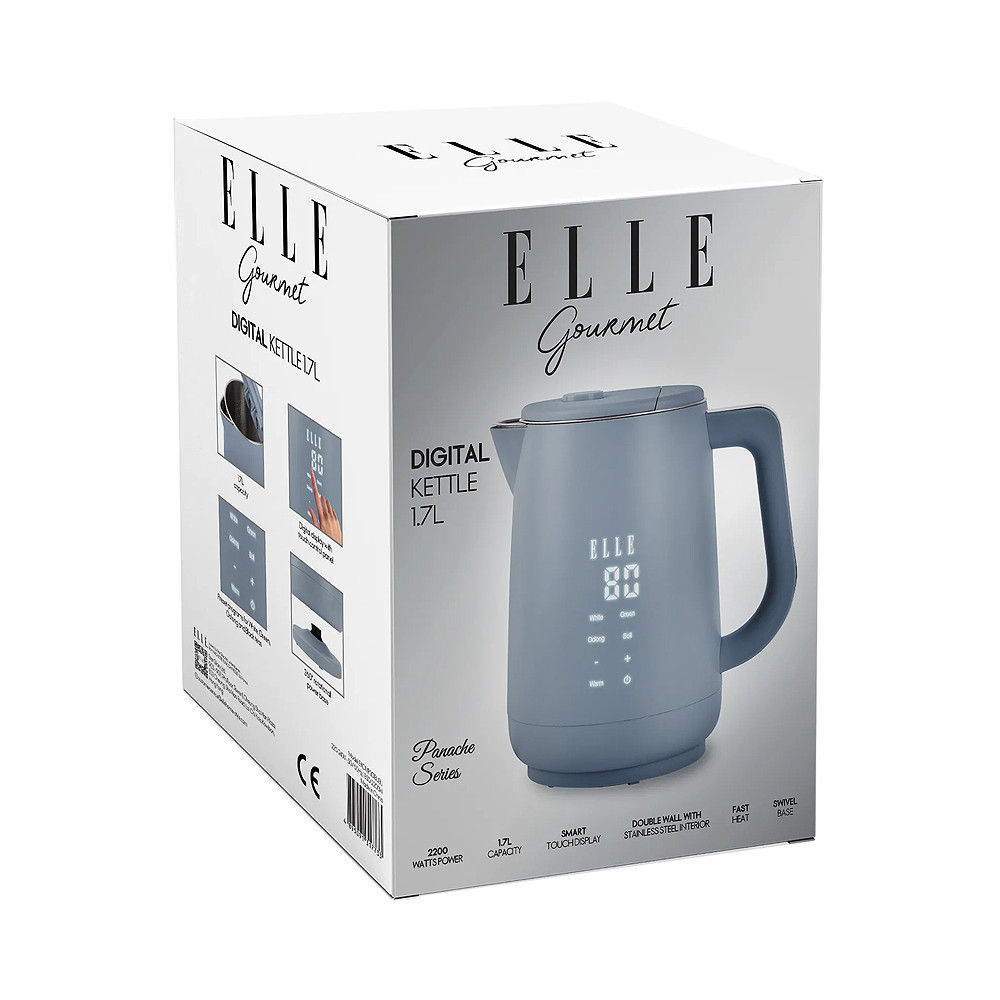 1.7L Digitálna rýchlovarná kanvica - bledomodrá. Tento úžasný spotrebič, v ktorom sa sofistikovaný štýl snúbi s jednoduchou funkčnosťou, prináša na vašu kuchynskú linku nádych modernej elegancie vďaka svojmu elegantnému dizajnu. Veľkorysý objem 1,7 l a presné digitálne ovládanie vám umožňujú ohrievať vodu na presnú teplotu potrebnú na všetko od jemných zelených čajov až po dokonalú kávu, čím zaručujú výnimočné výsledky.