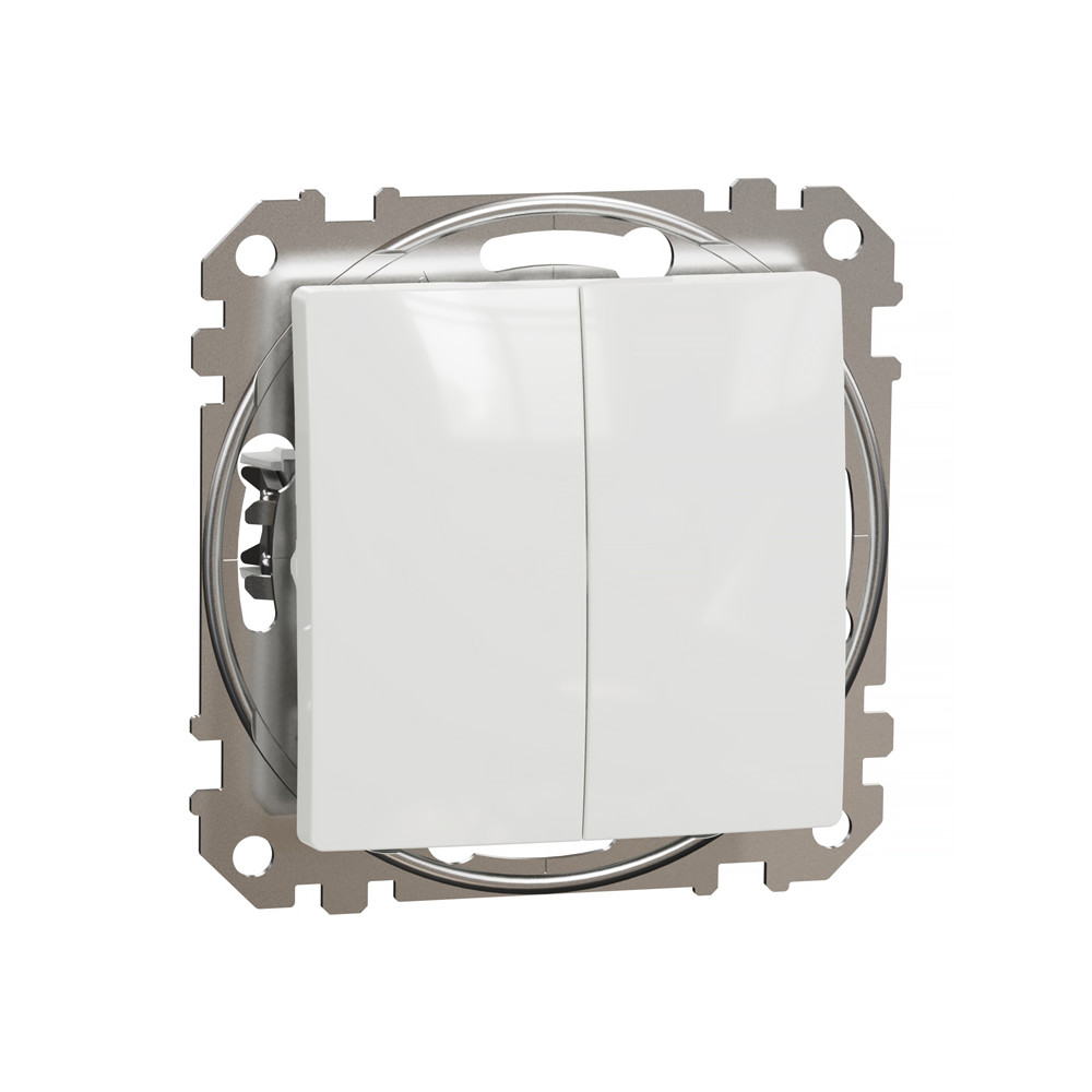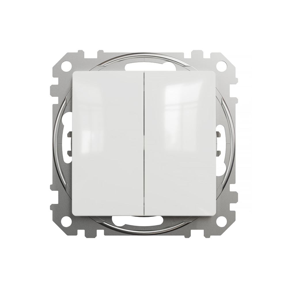 Biely sériový (dvojobvodový) vypínač Sedna, súčasť série Sedna Design od Schneider Electric. Má lesklý biely povrch a rozmery: šírka 73 mm, výška 73 mm, hĺbka 37 mm a hĺbka presahu 24 mm. Má bezskrutkové svorky, dĺžka odizolovania kábla je 13 mm. Vypínač má krytie IP20 a výkon 2300 W. Vyrobený je z termoplastu so zvýšenou odolnosťou voči UV žiareniu. Zariadenie je možné použiť ako tradičný spínač pre dva nezávislé zdroje svetla alebo na spínanie iných zariadení s maximálnym odberom prúdu až 10 AX. Spínač svetla má tri svorky: dve svorky na pripojenie prijímačov a jednu svorku pre napájanie (L).
