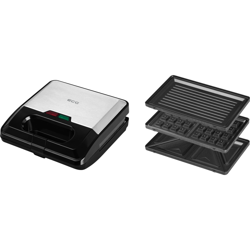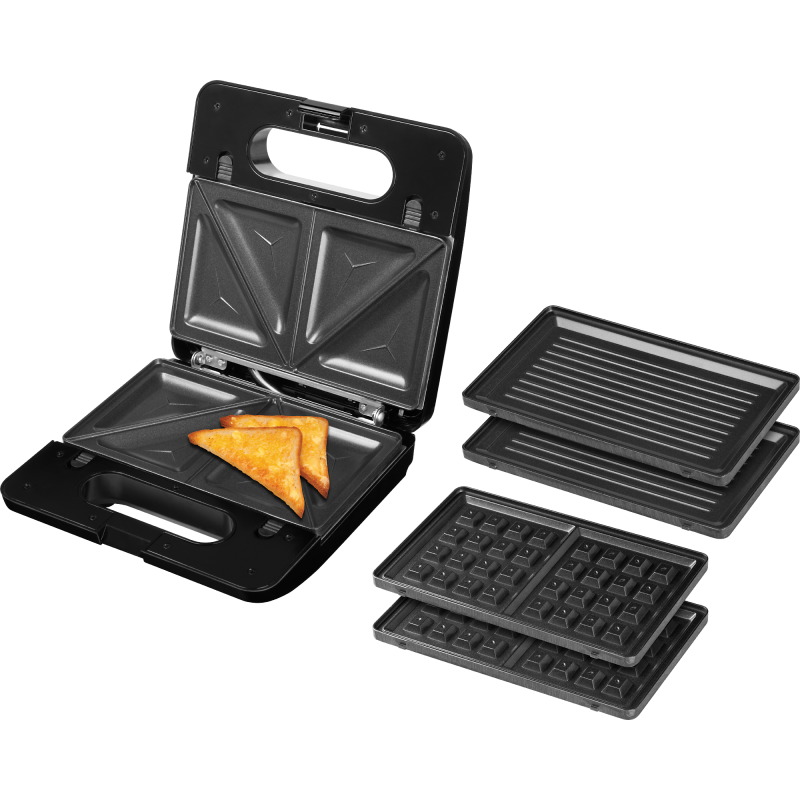 3 súpravy výmenných dosiek: Sendvičové (trojuholníky), Panini/zapekacie, Vafľovacie