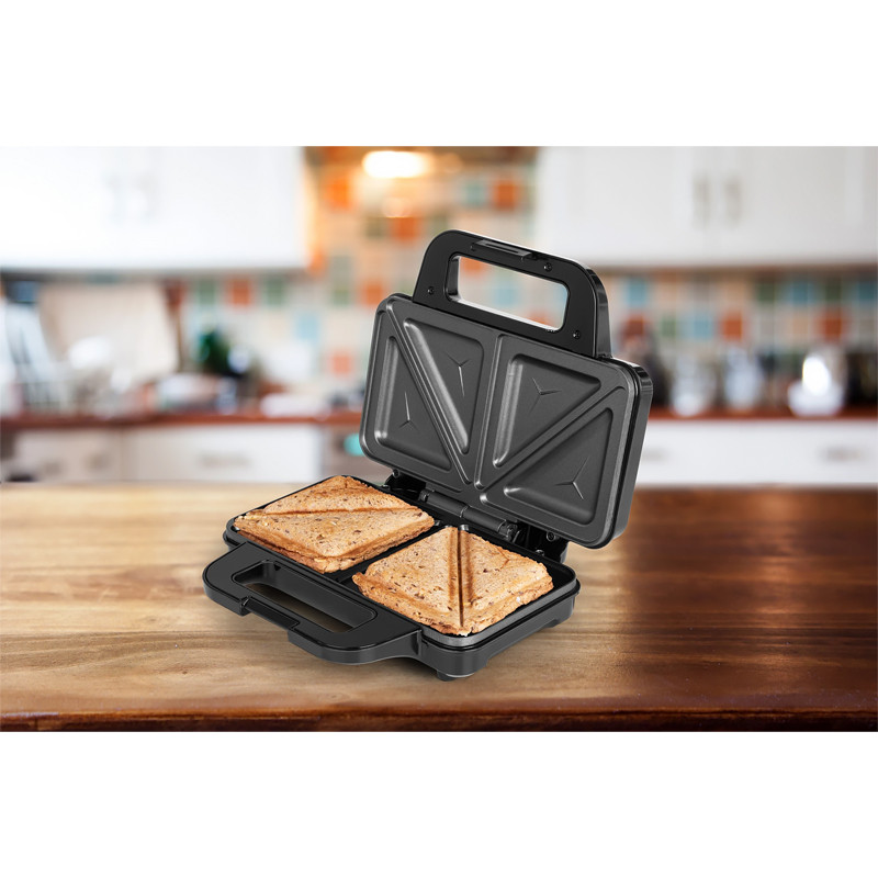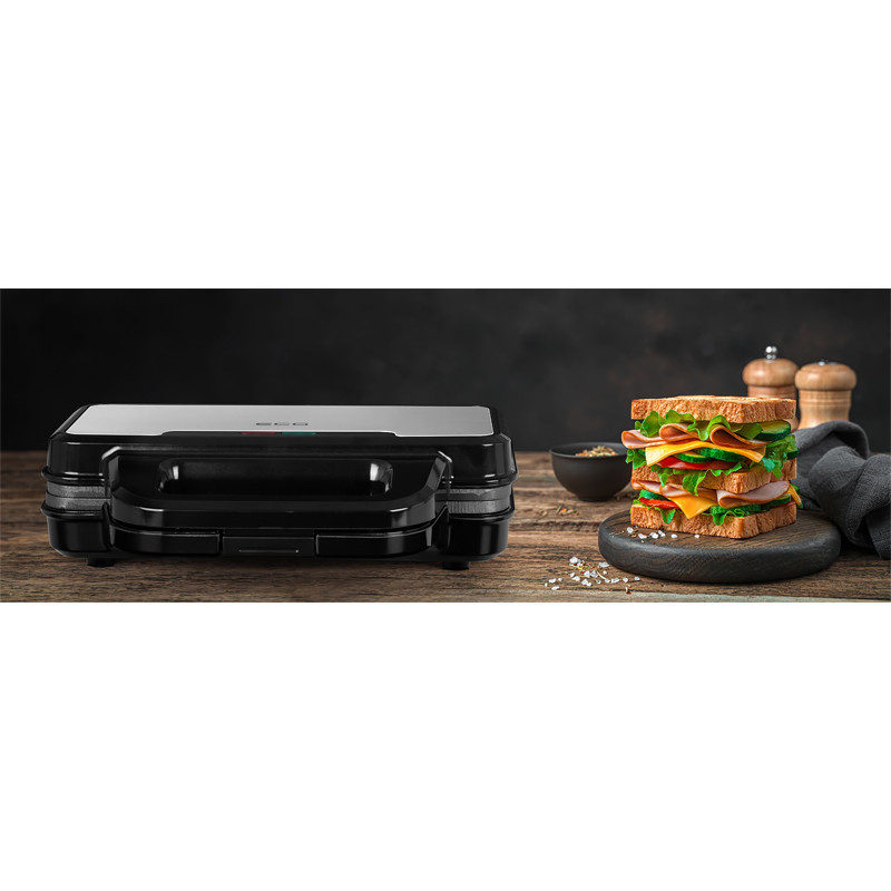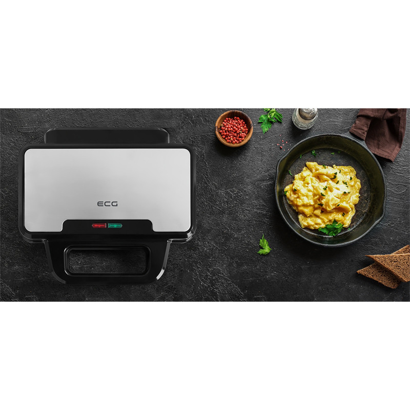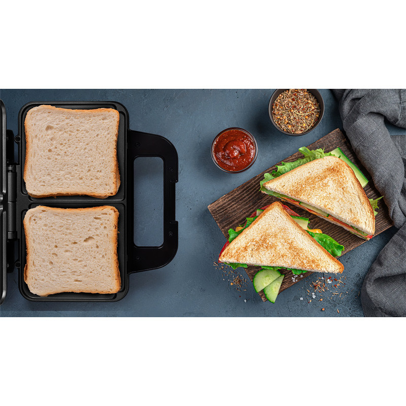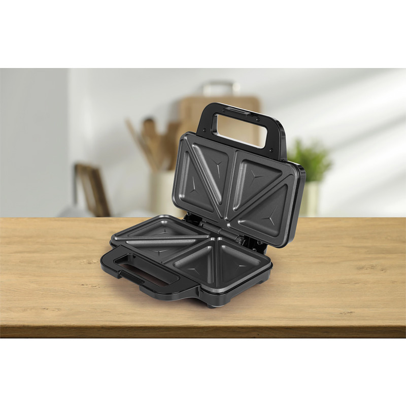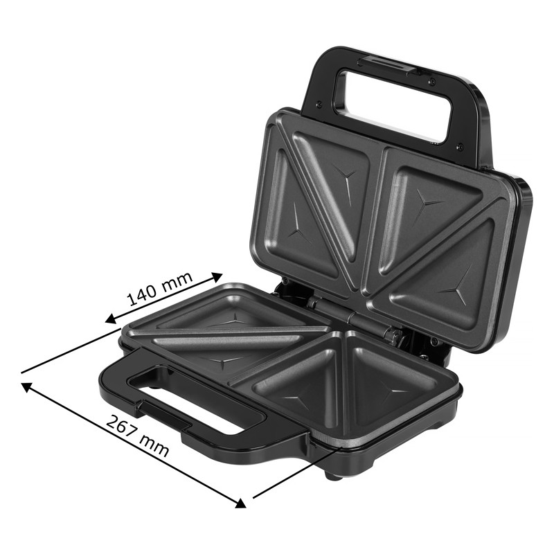 Sendvičovač - príprava až 4 trojuholníkových sendvičov naraz • nepriľnavý povrch pre ľahkú údržbu • príkon 900 W • bezpečnostné prvky na čele s tepelne izolovanými madlami • elegantný čierno-nerezový design
