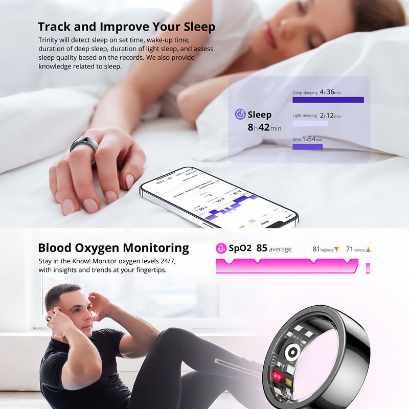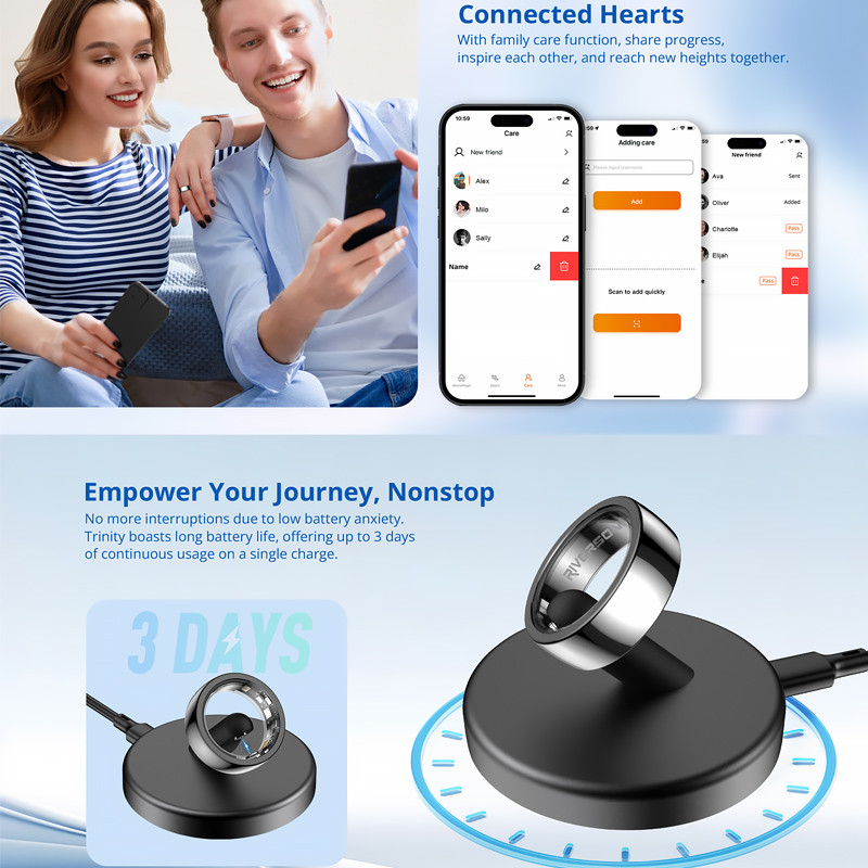 Riversong inteligentný prsteň Trinity biely - veľkosť 8, vnútorný priemer 18 mm. Konštrukcia z odolnej nano-keramiky, len 3.8g ľahký. Sleduj a zdokonaľuj svoje športové aktivity, spánok, hladinu kyslíka v krvi, srdečný tep. Až 3 dni fungovania na 1 nabitie. Odolné vode až do hĺbky 1,5m.