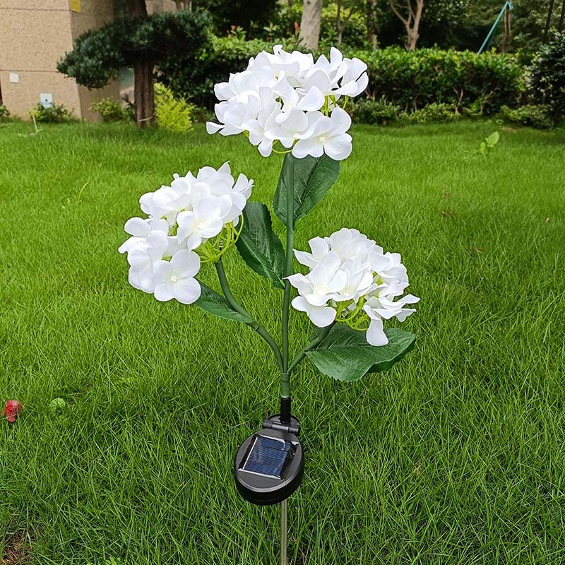 Záhradné solárne osvetlenie v tvare kvitnúcej bielej hortenzie - 3x teplá biela LED • teplota farby 3000 K • batéria 600 mAh Li-Ion • svieti automaticky po zotmení