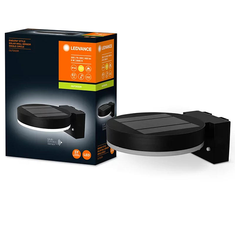 Reflektor LED so solárnym panelom+PIR LEDVANCE ENDURA STYLE SOLAR WALL SENZOR SINGLE CIRCLE 6W 3000K+PIR