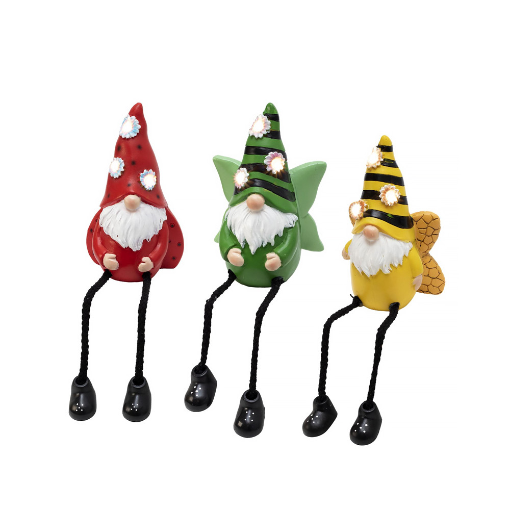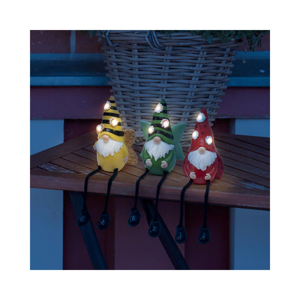 Solárne záhradné svietidlo, trpaslík s visiacimi nohami • 3 teplé biele LED v kvetoch • prevedenie odolné voči poveternostným podmienkam • za- a vypínač • zabudovaný solárny panel a nabíjačka akumulátora: cez deň sa nabíja, v noci svieti • materiál: umelá živica • hmotnosť: 167 g • rozmer: cca. 9,1 x 6,8 x 13,5 cm. CENA za 1 KUS trpaslíka (..3 farby na výber).