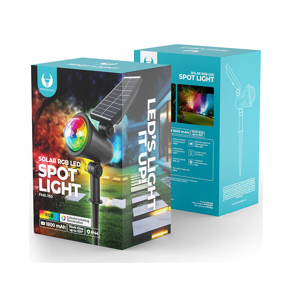 Forever Light Sunari FME-190 je solárna LED lampa s RGB podsvietením, navrhnutá na dekoratívne osvetlenie okolo domu. Dobre funguje v záhradách, na terasách, balkónoch alebo pri vstupe – vytvára atmosféru s farebným svetlom v noci a cez deň sa nabíja solárnou energiou.