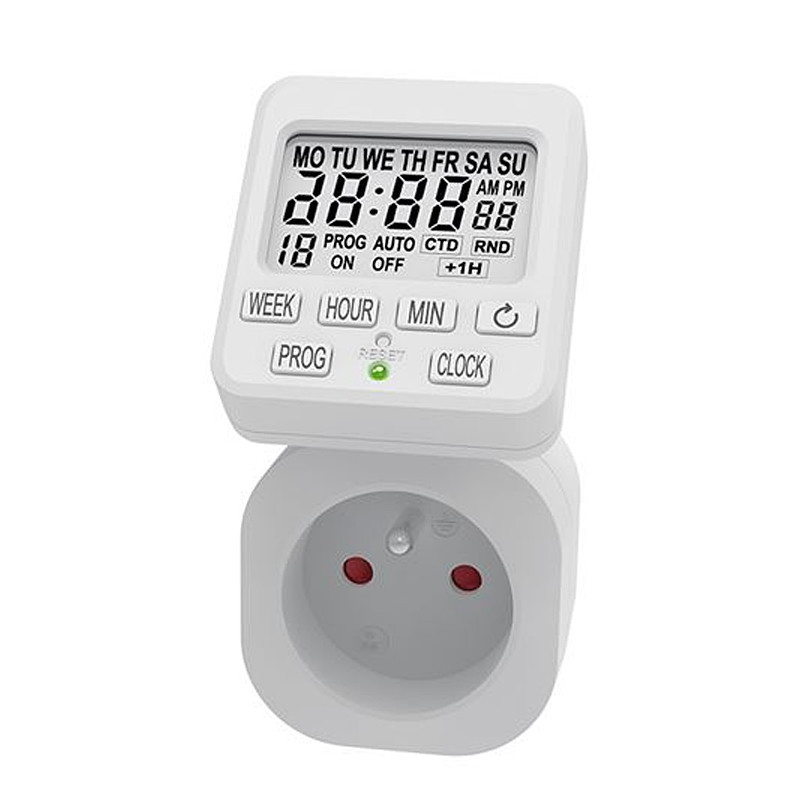 Tento časovač je vybavený prehľadným displejom LCD, ktorý sa dá otáčať pre lepšiu čitateľnosť. Ponúka 18 denných spínacích cyklov a 15 skupín na nastavenie rôznych dní. Má časovač odpočítavania, detskú poistku a pamäť na ukladanie nastavených hodnôt. Presnosť nastavenia je 1 minúta, prevádzková teplota sa pohybuje od -10 °C do +40 °C. Napájanie 230 V/16 A (3680 W).