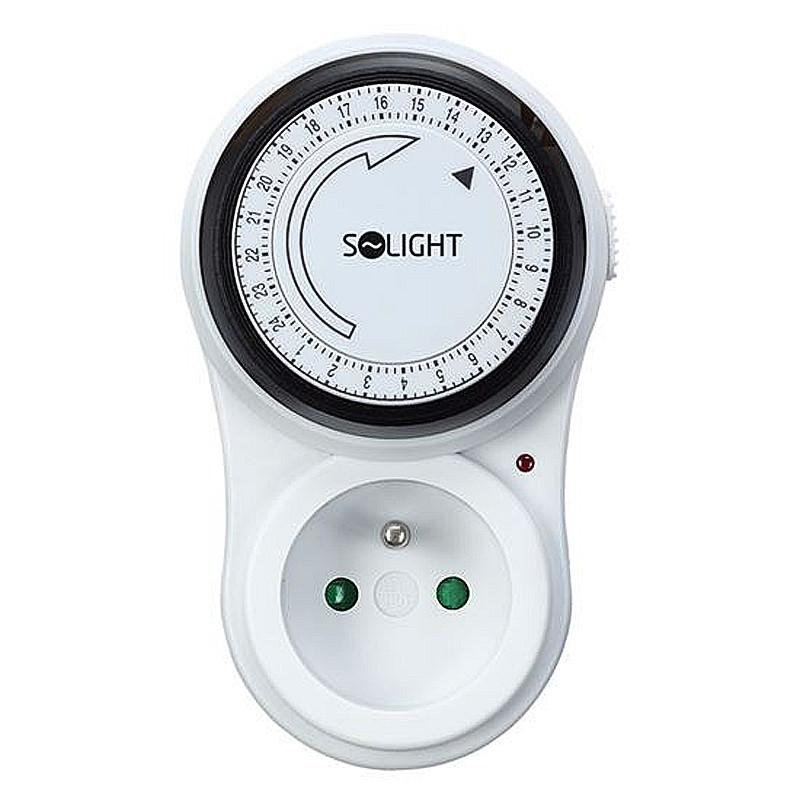 Mechanický časový spínač s rozsahom 24 hodín umožňuje nastaviť minimálny čas 15 minút. Je vybavený vypínačom, detskou poistkou a pracuje s napätím 230 V/16 A, 50 Hz.
