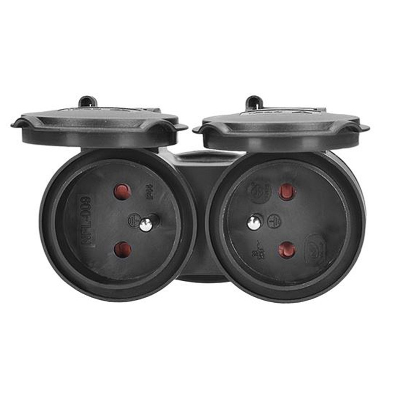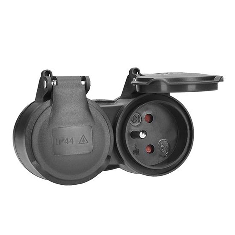 Dvojzásuvka do vlhka, IP44, čierna