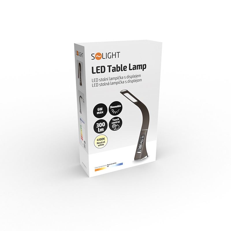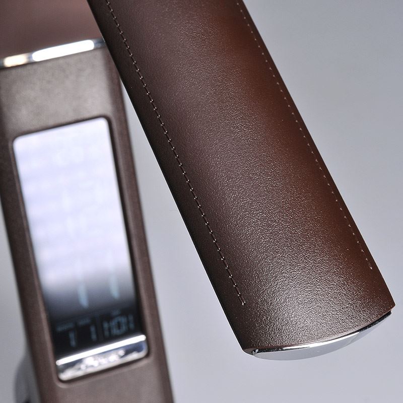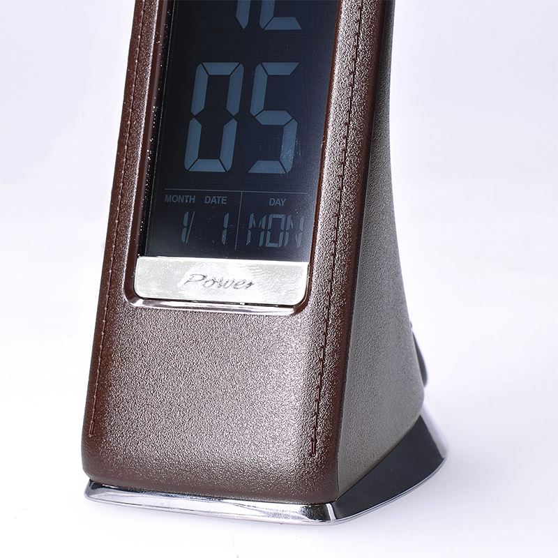 stolná lampička s LED svetelným zdrojom a dizajnom čiernej kože stmievateľná - 3-stupňové stmievanie displej s funkciou času, kalendár, hodiny a teplomeru