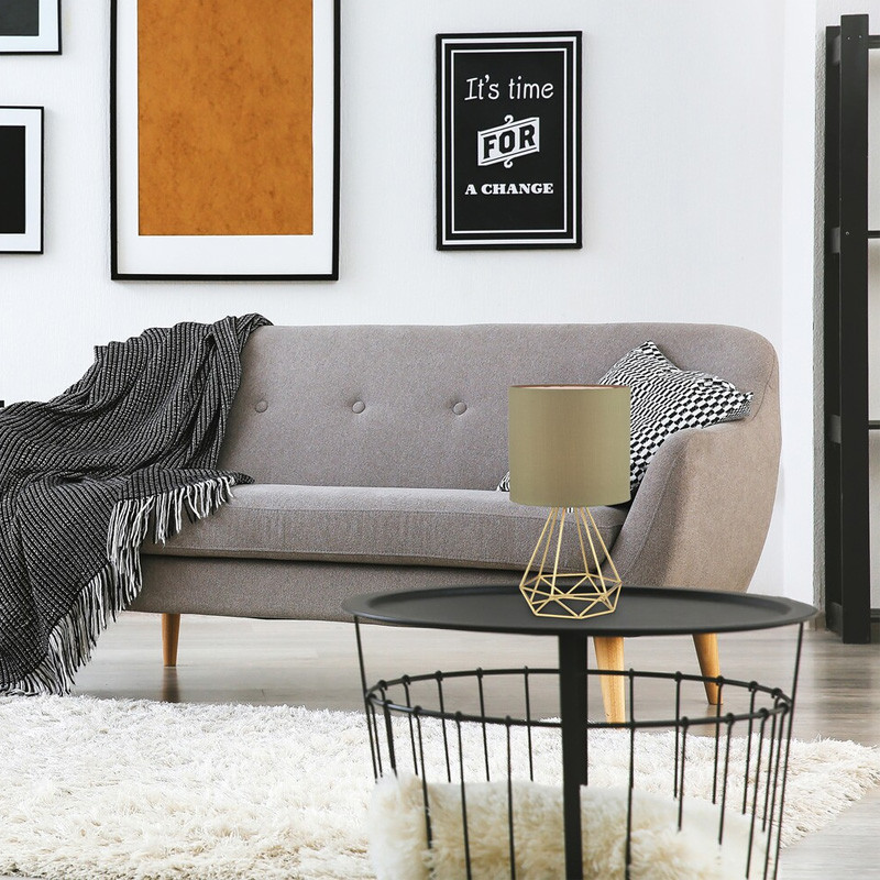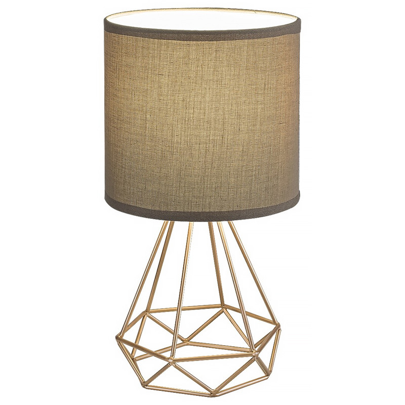 Industriálna nočná hnedo-zlatá lampa - pre žiarovku E14 max.40W • materiál: kov, textil • ochrana: IP20 • výška: 32 cm • s vypínačom