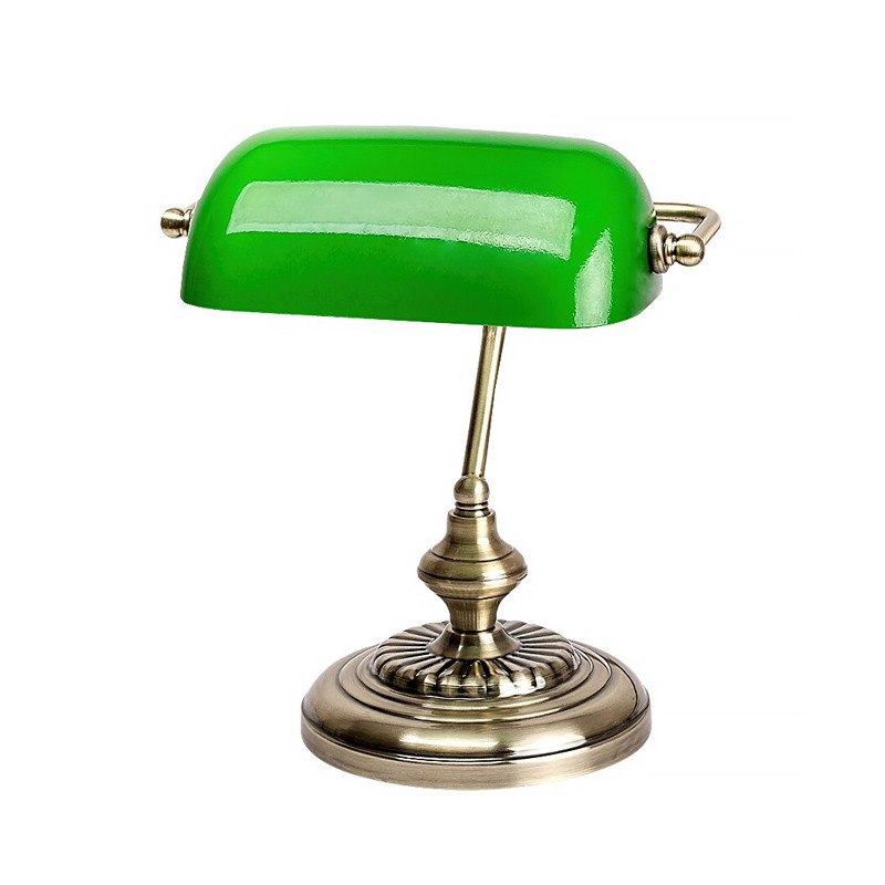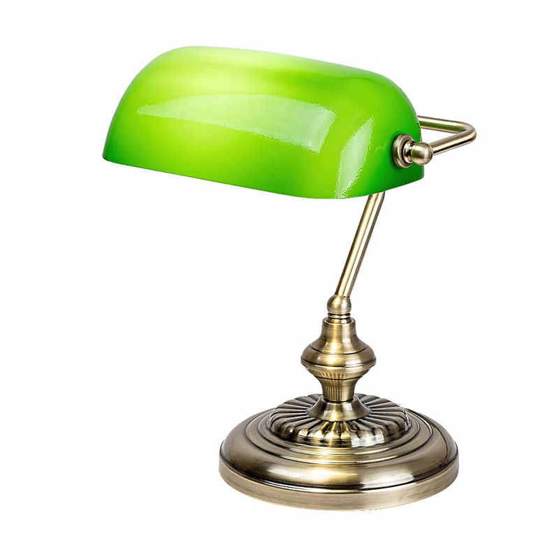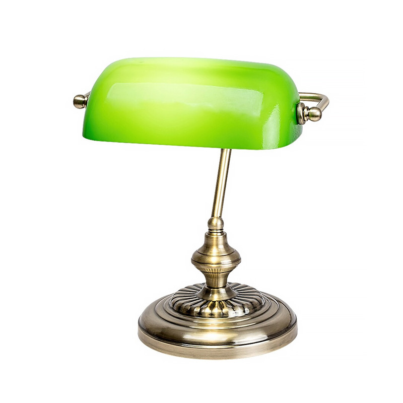 Klasická stolná bronzovo-zelená lampa - pre žiarovku E27 max.60W • materiál: kov, sklo • ochrana: IP20 • výška: 33 cm • s vypínačom