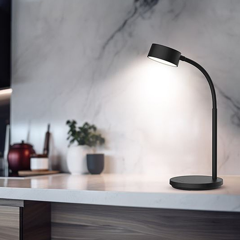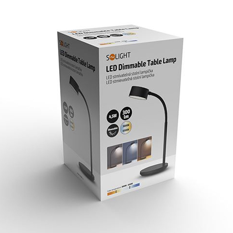 LED stolná lampička, dotykovo nastaviteľná farba svetla a jas - svetelný tok: 300 lm • príkon: do 4,5 W • napájanie: USB kábel (pribalený, bez adaptéra) • výška: 35 cm • farba: čierna