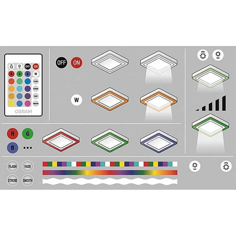 LED stropné svietidlo Osram COLOR WHITE s diaľkovým ovládaním - Osram LED COLOR WHITE SQ 200mm 19W