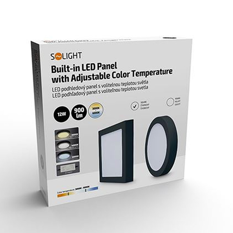 Svietidlo SOLIGHT WD171-B čierny 12W 3-6000K CCT 900lm led panel štvorcový prisadený