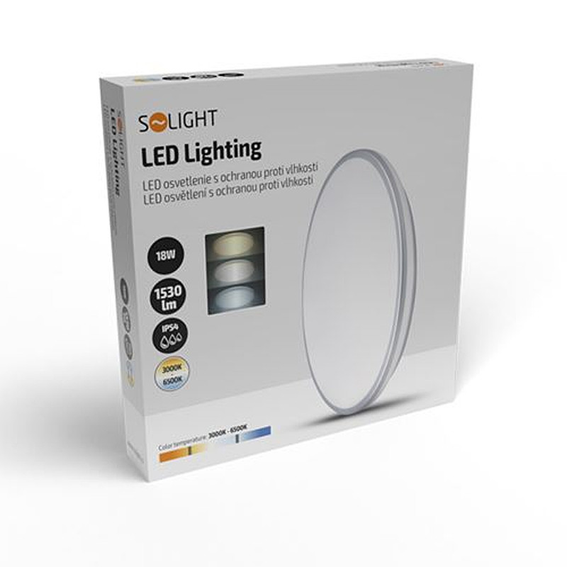 Stropnica LED IP54 330mm 18w 3-6500K CCT bielo-stieborná 1530lm SOLIGHT WO796