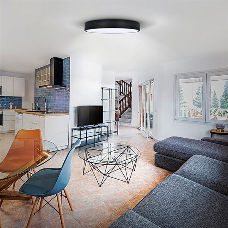 Čierne okrúhle stropné LED svietidlo s prepínateľnou farbou svetla ‒ výkon: 36W • svetelný tok: 2100lm • priemer: 30cm • farba: čierna