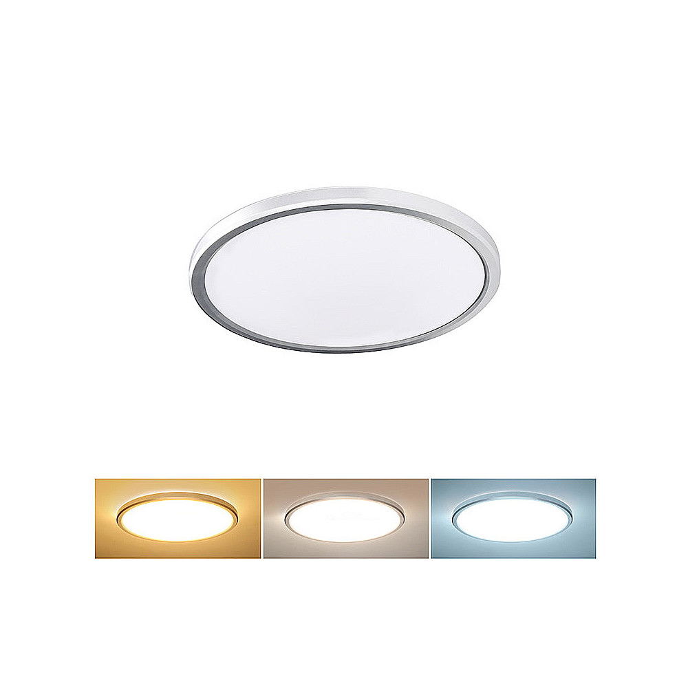 Stropnica LED IP54 220mm 18W 3-6000K 3CCT 1620lm okrúhla strieborná SOLIGHT WO825 Acate