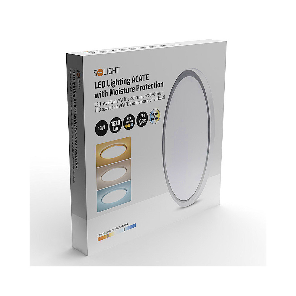 - LED osvetlenie s nastaviteľnou teplotou svetla Acate. Svetlo ponúka ochranu proti vlhkosti IP54 a je tak vhodné do interiérov aj exteriérov.