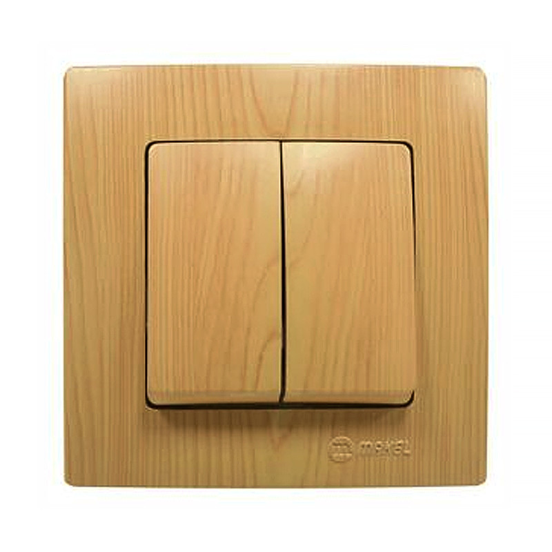 Prepínač dvojitý striedavý r. 5B, kolekcia Lilium Kare, imitácia svetlého dreva. Používame v prípade potreby ovládať 2 svetlá z dvoch rôznych miest.