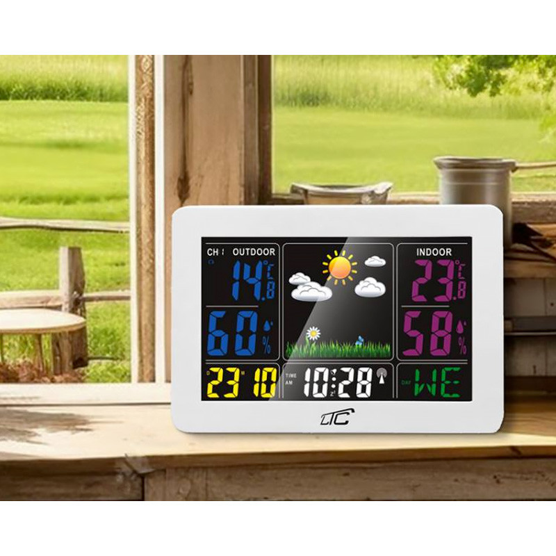 Bezdrôtová meteostanica s prehľadným displejom a meraním teploty. Prístroj sa vyznačuje mimoriadnou presnosťou merania, nízkou spotrebou energie, moderným dizajnom, funkciou budíka a snooze, a podsvieteným displejom.