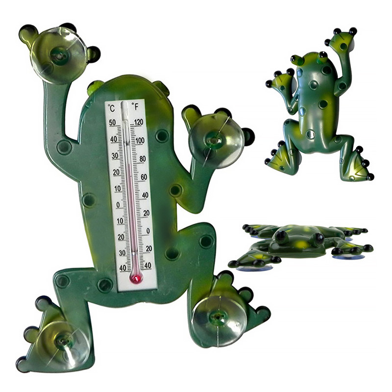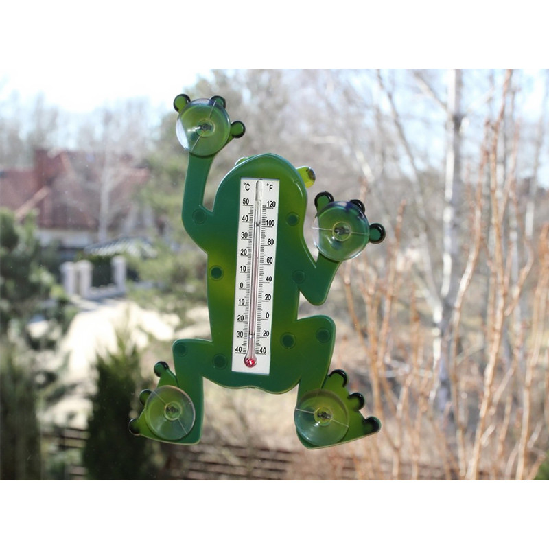 Vonkajší okenný teplomer s prísavkou, žabka. Okenný teplomer je veľmi účinná vychytávka, ktorá sa dá nalepiť na každé ploché okno. Presne zmeria teplotu mimo budovy aj vo vnútri miestností. Teplotný rozsah od -40 do +50 stupňov Celzia.