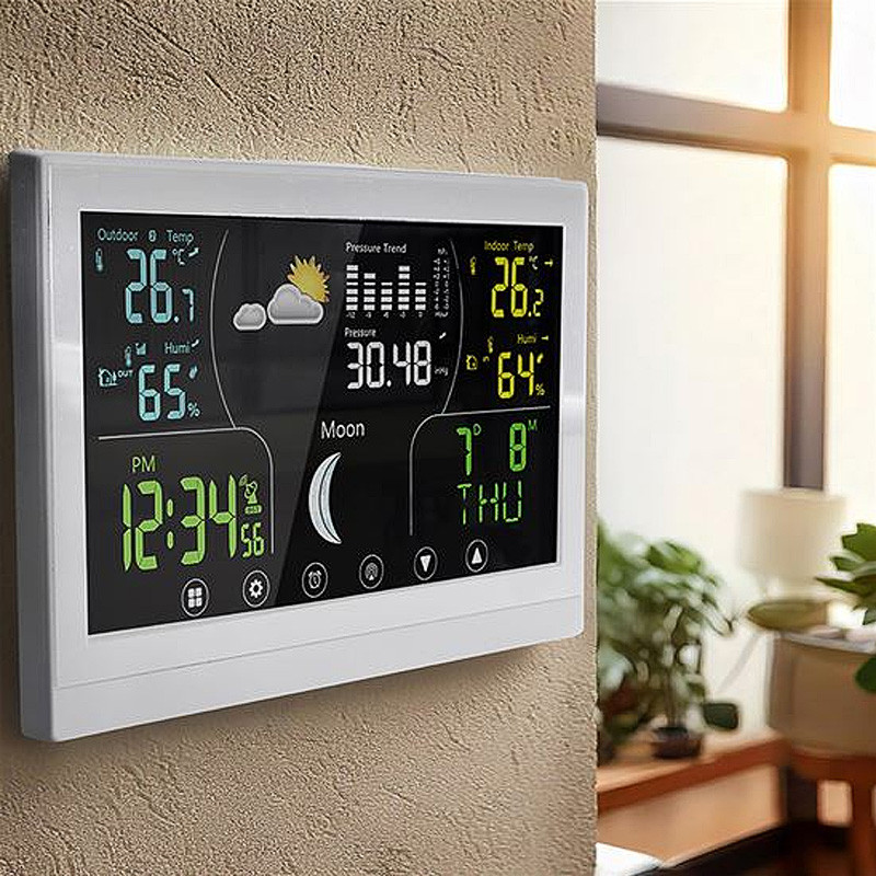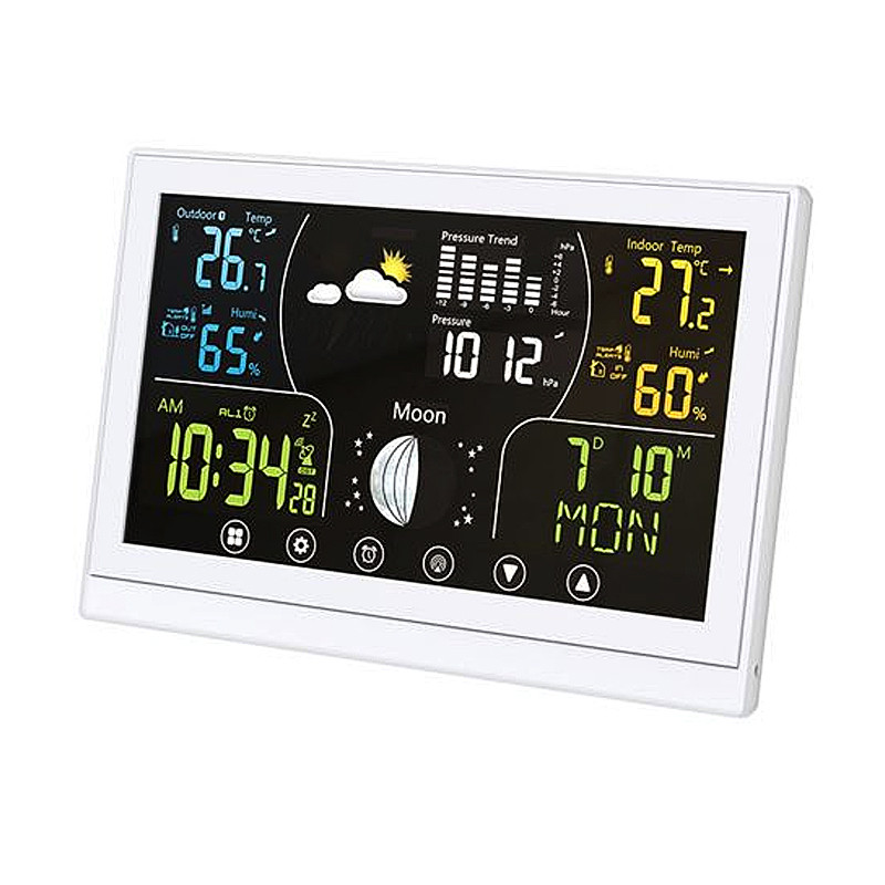 Táto meteostanica je vybavená farebným dotykovým displejom s rozmermi 168 x 93 mm, ktorý zaručuje vynikajúcu čitateľnosť a intuitívne ovládanie. Vďaka možnosti trvalého podsvietenia je displej prehľadný aj v tme. Poskytuje širokú škálu informácií vrátane aktuálnej teploty (vnútorná, vonkajšia), relatívnej vlhkosti, atmosférického tlaku, fáz mesiaca a predpovede počasia.