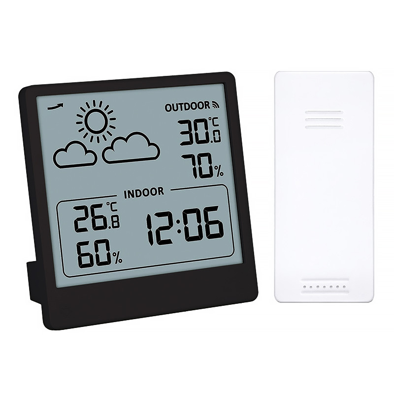 Meria vnútornú teplotu a vonkajšiu teplotu. Meranie vlhkosti pre vnútorné a vonkajšie prostredie. Ukladanie maximálnych a minimálnych hodnôt teploty a vlhkosti, zobrazenie trendu zmeny tlaku a predpovede počasia. Možnosť výberu jednotiek teploty. Napájanie: hlavná jednotka a snímač 2× AAA batérie (nie sú súčasťou balenia). farba: čierna.