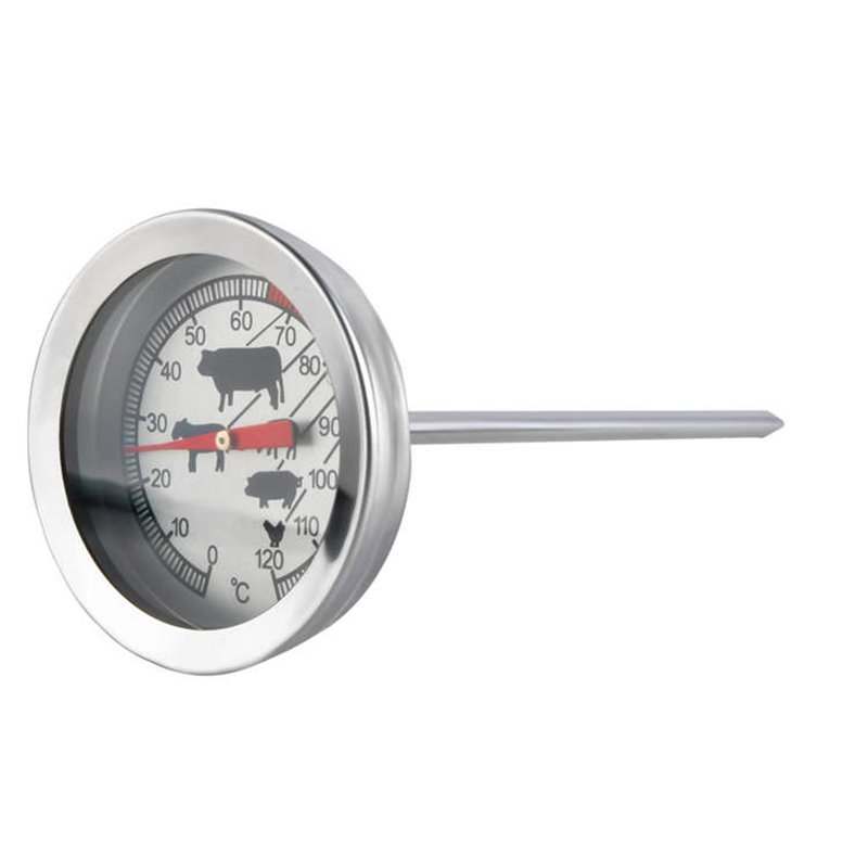 Vynikajúci analógový teplomer nielen pre údiarne - široké využitie v gastronómii, reštauráciách, potravinárskom priemysle a v domácnosti. Je vyrobený z nehrdzavejúcej ocele. Rozsah merania: 0 - 120 stupňov Celzia.