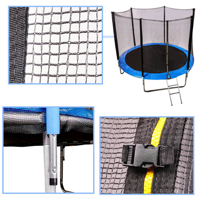 Veľká záhradná trampolína pre deti. Má vstup na zips a rebrík pre ľahký prístup. Vybavené krytom pružiny a ochrannou sieťou pre väčšiu bezpečnosť pri skákaní. Jej maximálna nosnosť je 150 kilogramov .