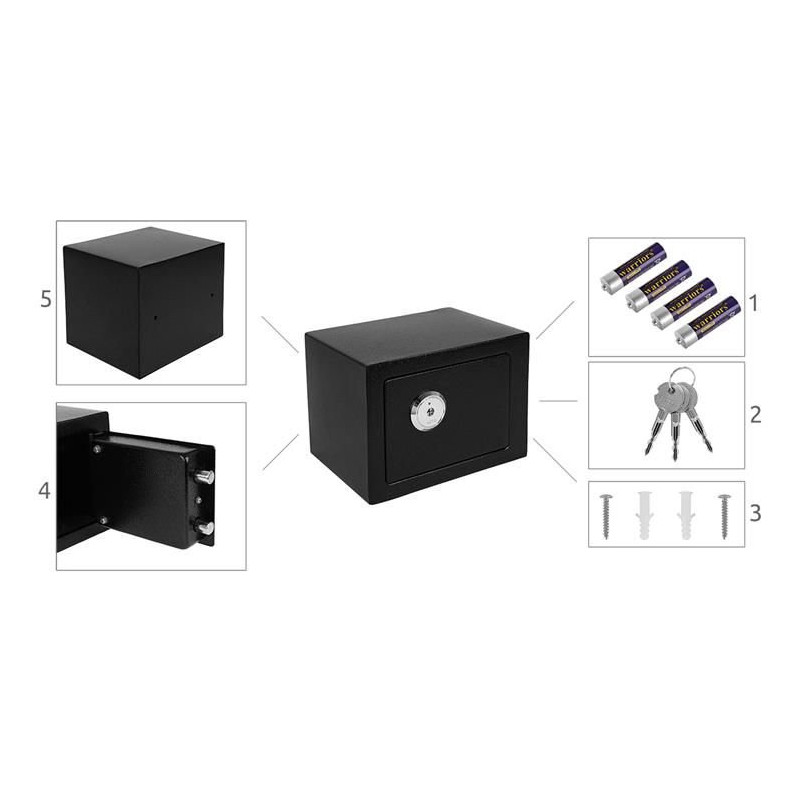 Trezor je možné použiť na uloženie cenných predmetov, v dome, kancelárií ako aj v hotelovej izbe..Trezor je odolný voči poškodeniu a je pomerne ťažký.Sada obsahuje aj montážne skrutky, ktoré vám umožnia pripevniť trezor na stenu alebo šatník cez otvory na zadnej strane .