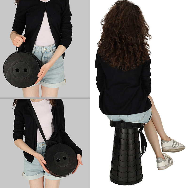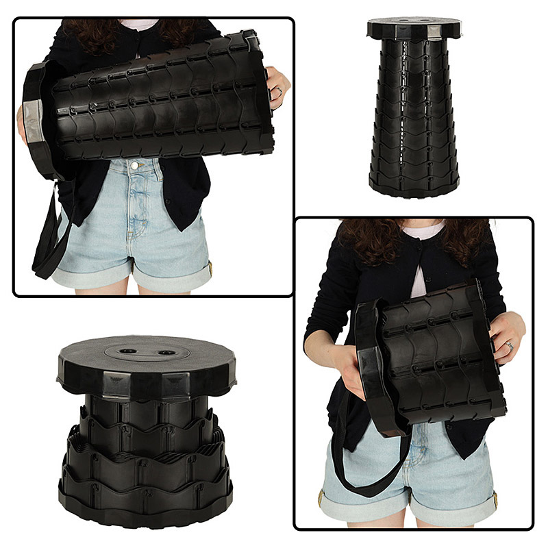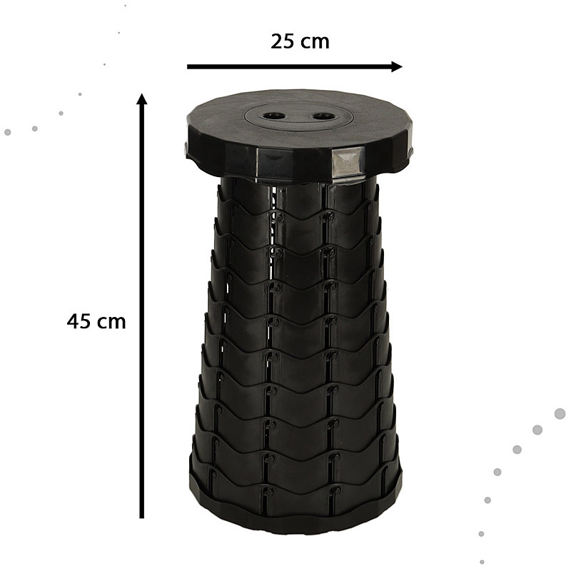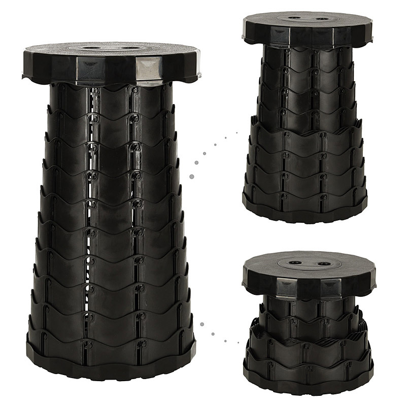 Stolička rozkladacia teleskopická plastová čierna TELESCOPIC FOLDING STOOL