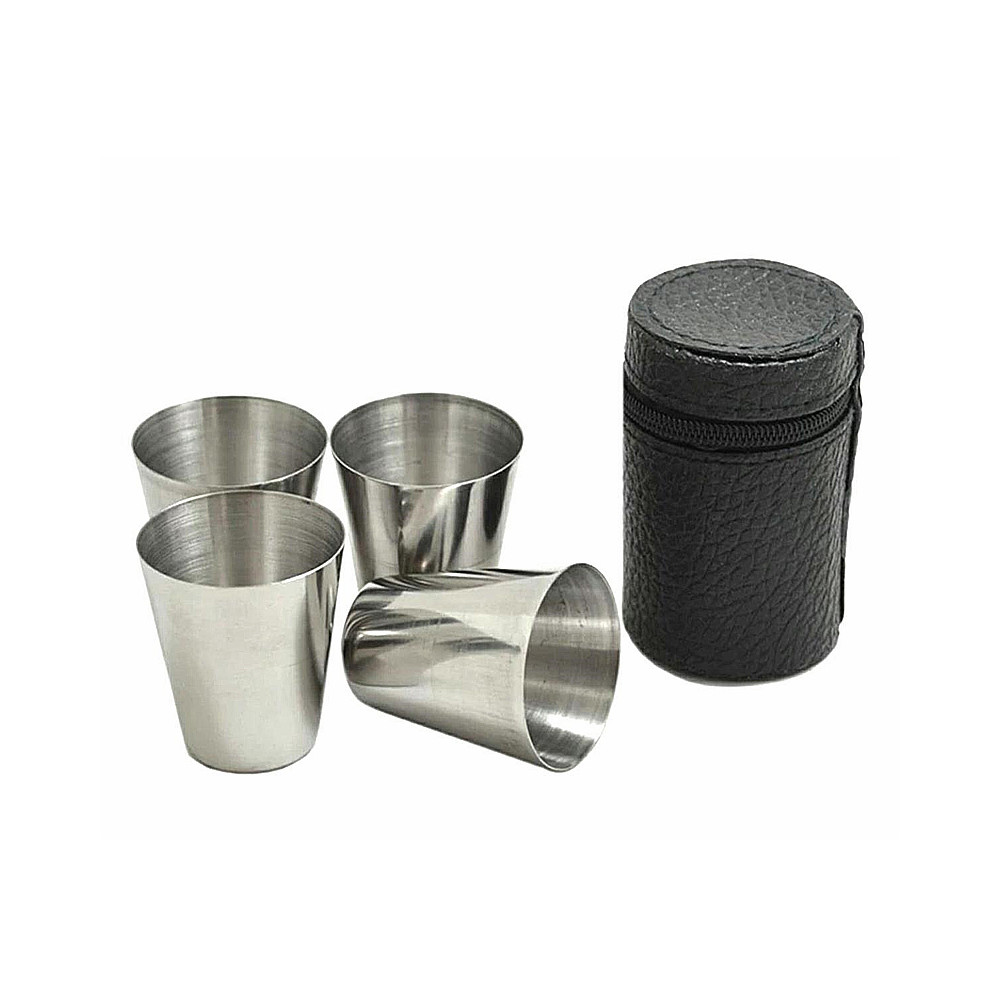 Nerezové poháriky 4ks 30ml štamperlíky v koženom púzdre