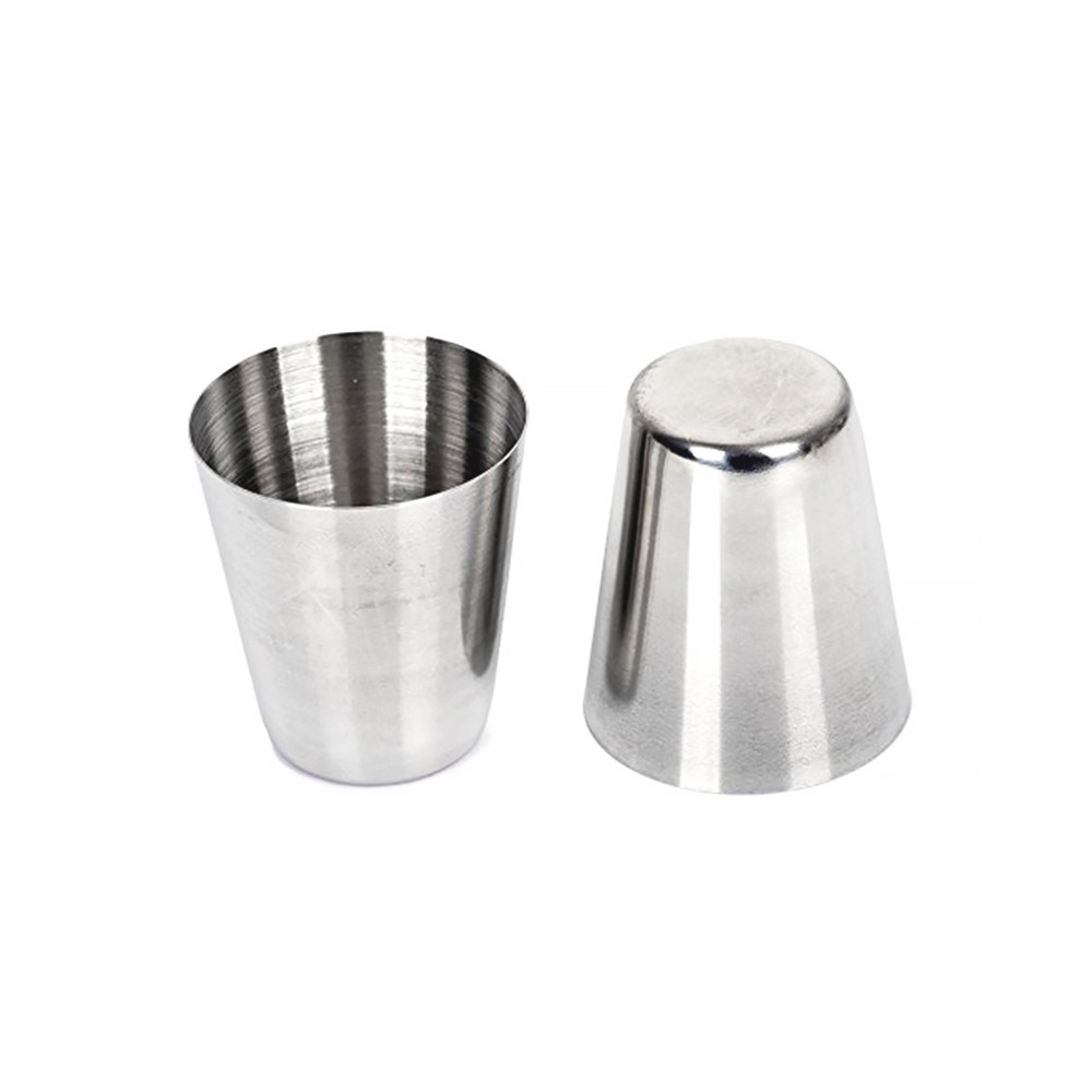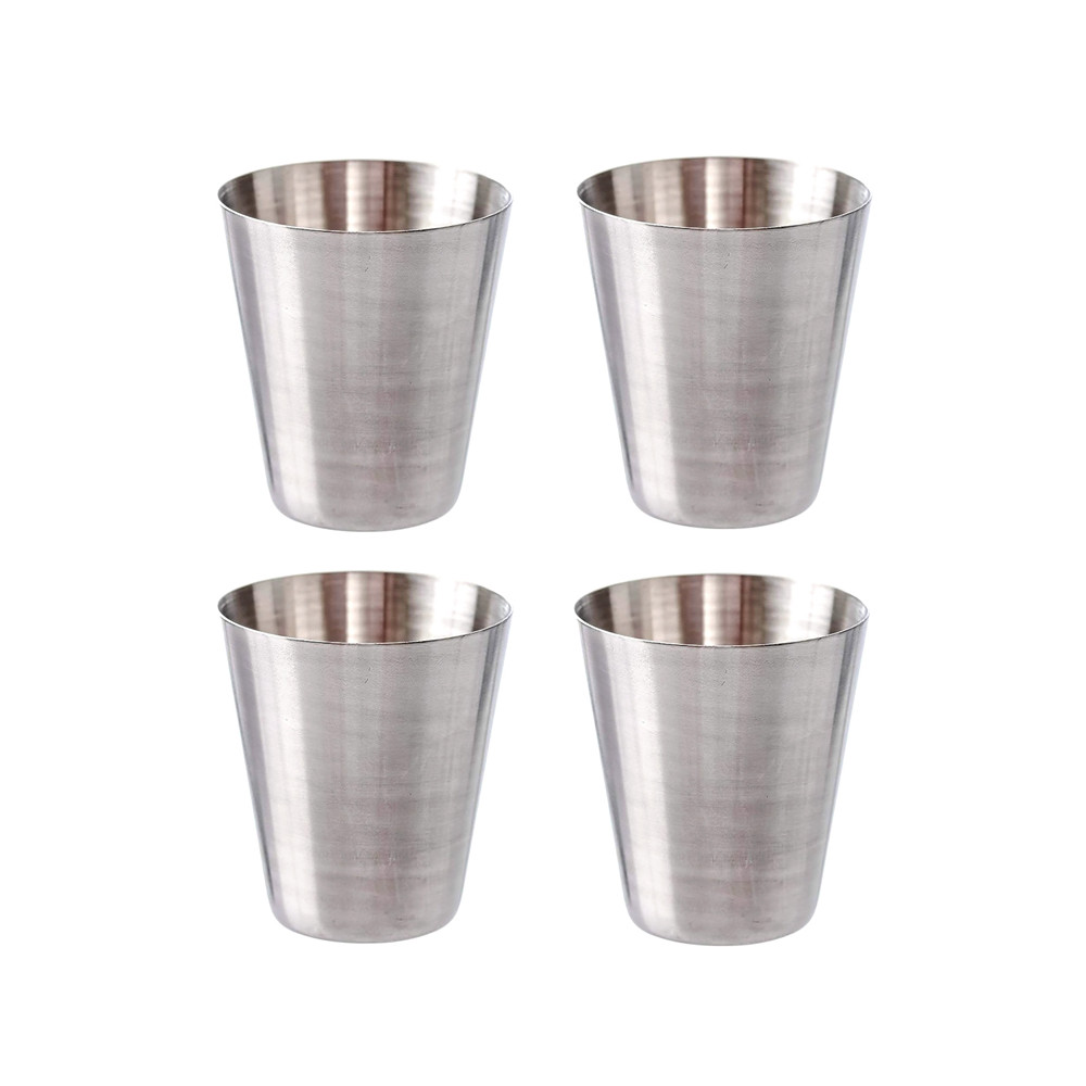 - Sada 4 pohárov s objemom 30 ml je vyrobená z nehrdzavejúcej ocele, čo zaisťuje vysokú odolnosť a dlhú životnosť.