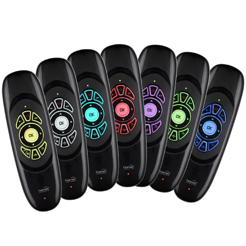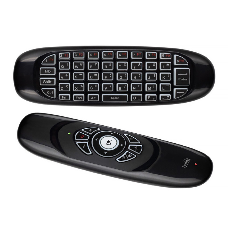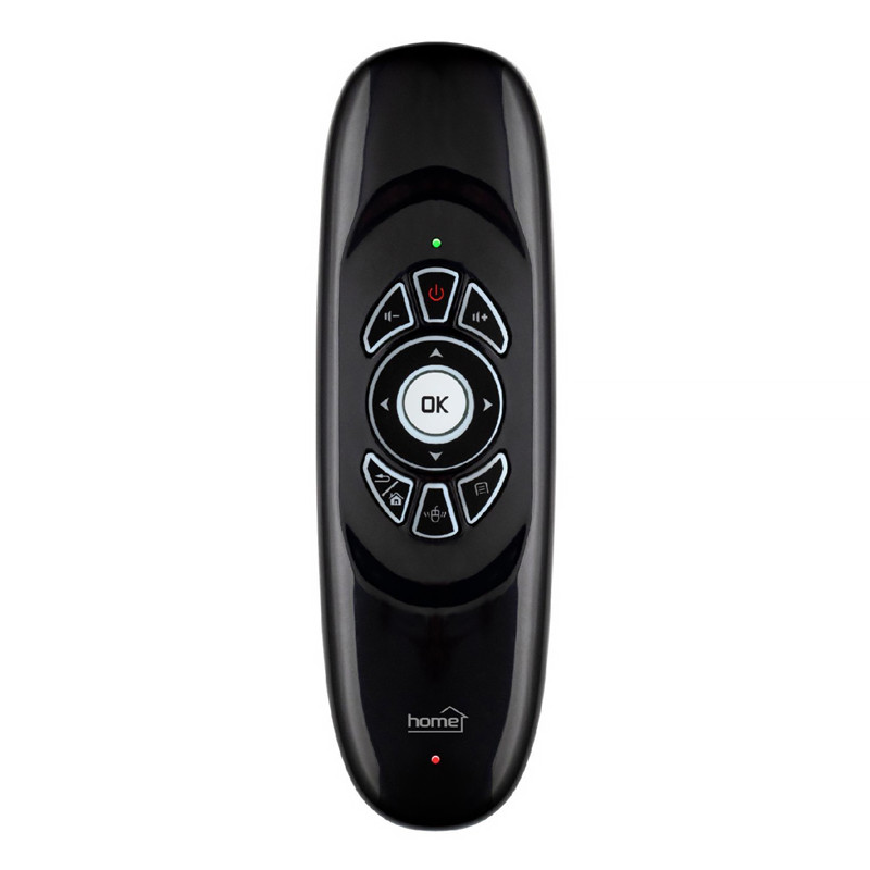 Univerzálny diaľkový ovládač, rádiový • bezdrôtová myš, klávesnica, herný ovládač • manuálna myš (◄ ►▲▼) a 3D AirMouse • nastaviteľná rýchlosť ukazovateľa myši • 3-osový gyroskopický snímač pohybu • anglická klávesnica • 7 farebných, podsvietených tlačidiel • žiadna výmena batérie, má zabudovaný akumulátor