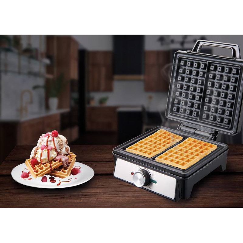 Bezpečné a pohodlné používanie zaisťuje rukoväť, ktorá sa počas prevádzky zariadenia nezahrieva. Navyše, stabilné protišmykové nožičky zabraňujú pohybu vaflovača počas pečenia vašich obľúbených dobrôt.