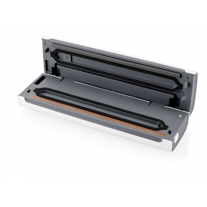 - Plne automatická: uzavretím pevne zaistí fóliu, odsaje vzduch, zataví spoj