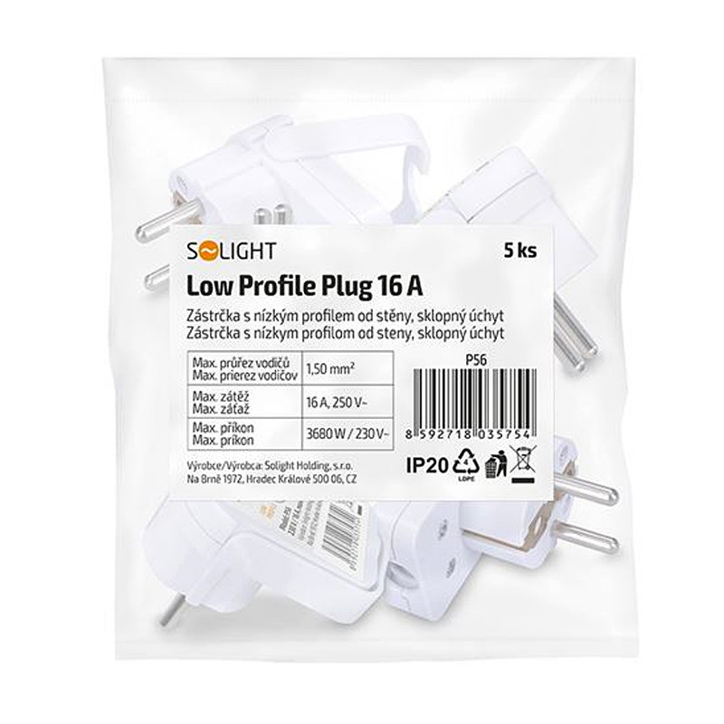 Vidlica 230V biela uhlová nizky profil SOLIGHT P56 (P50)