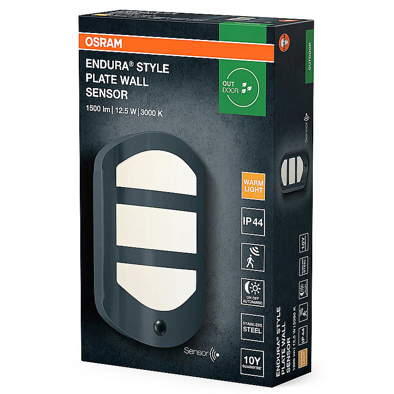 Vonkajšie nástenné svietidlo LED OSRAM ENDURA Style Plate Wall Sensor 12W 3000K Dark Grey