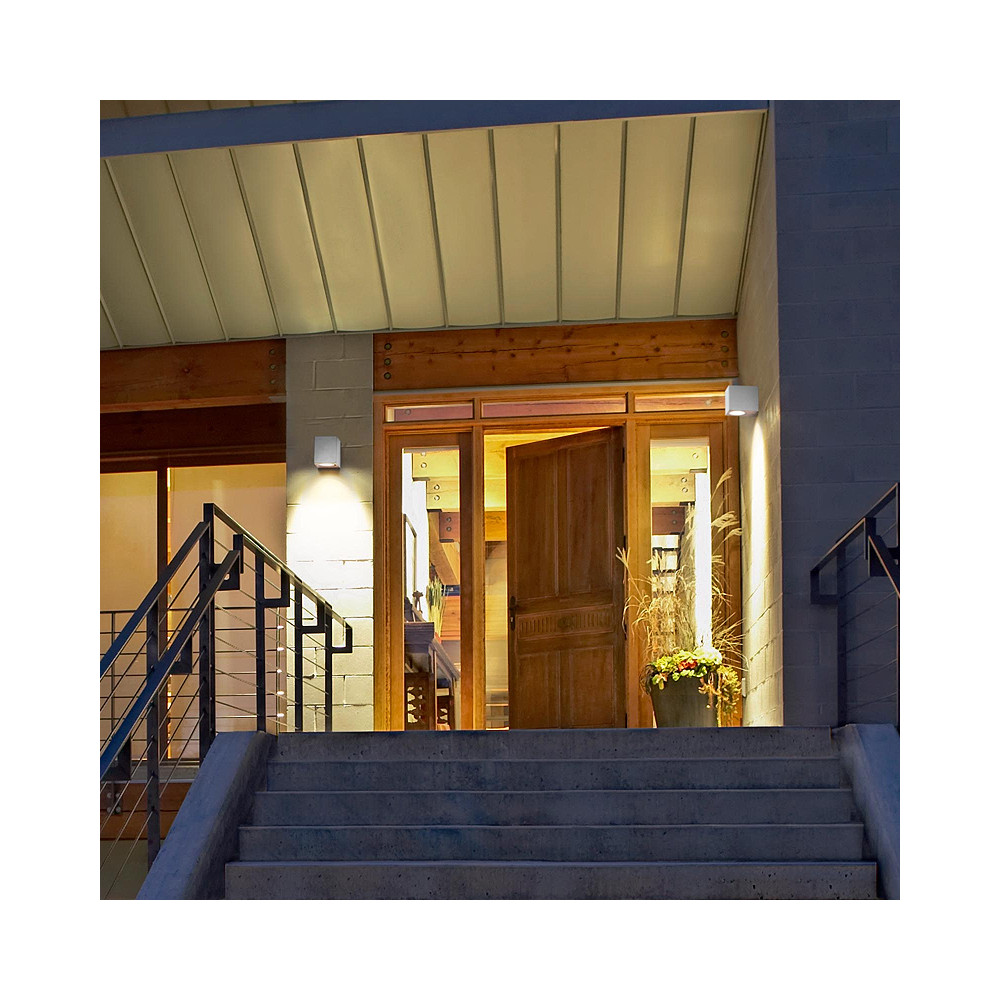 Biele nástenné moderné kubické kompaktné vonkajšie svietidlo - pre svetelný zdroj s päticou: GU10 • ochrana: IP44 • napätie: 220-240V • materiál: hliník • farba: biela • rozmery: 7x9x8 cm