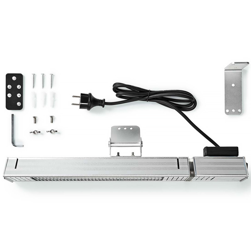Nástenné vonkajšie vykurovacie teleso - max.výkon 2000W • 9 nastavení teploty • nastaviteľný uhol • montáž na stenu • ochrana IP65 • hliníková konštrukcia • diaľkové ovládanie.