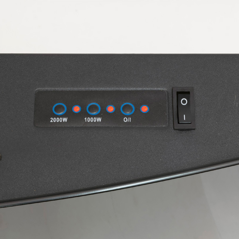 predný kryt z kaleného skla • možnosť používať efekt reálneho plameňa aj samostatne a regulovať jeho jas • 2 stupne ohrevu: 1000/2000W • elektronický termostat • týždenný program • adaptívna regulácia zapnutia • automatické vypnutie v prípade prehriatia • všetky funkcie na diaľkové ovládanie • horný výfukový bod • rozmery: 88,5 x 56 x 13,5 cm • Výrobok nie je vhodný na osvetlenie domácnosti.