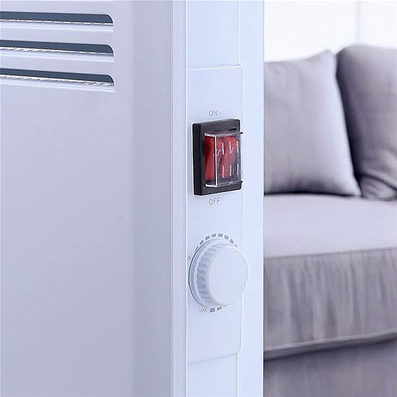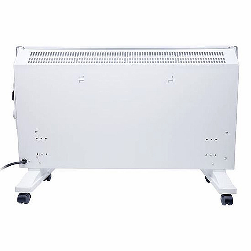 Výkonný 2000W ohrievač s dvoma úrovňami výkonu (1000W / 2000W) a hliníkovým vykurovacím telesom pre účinné vykurovanie. Termostat umožňuje udržiavať stálu teplotu v miestnosti. Ochrana proti prehriatiu zaisťuje bezpečnosť. Môže byť voľne stojaci na kolieskach alebo namontovaný na stenu. Stupeň krytia IPX4 chráni pred striekajúcou vodou, čo umožňuje použitie vo vlhkých priestoroch. Napájanie 220-240 V/50 Hz.