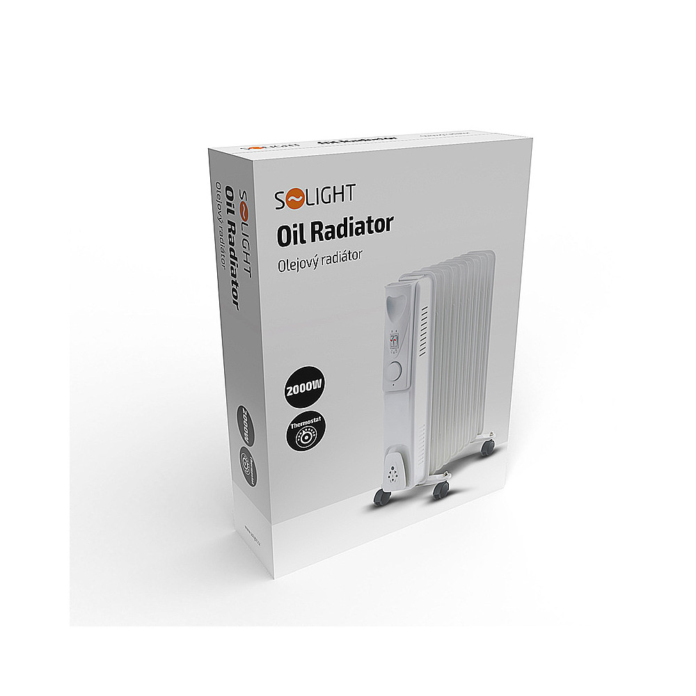 Elektrický radiátor olejový Solight OR01 - 9 vykurovacích článkov • max.príkon 2000 W • nastaviteľný termostat • ochrana proti prehriatiu • bezúdržbová prevádzka
