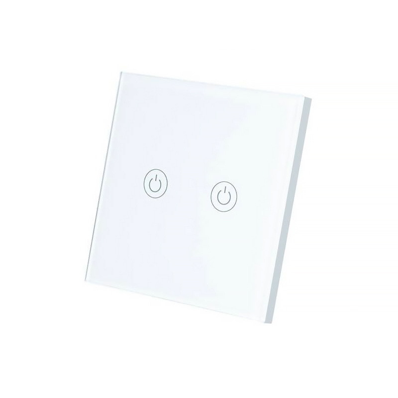 Moderný minimalistický dvojitý vypínač svetla vyrobený z tvrdeného skla. Vďaka elegancii a odolnosti je tento produkt ideálny pre každú miestnosť vo vašej domácnosti.