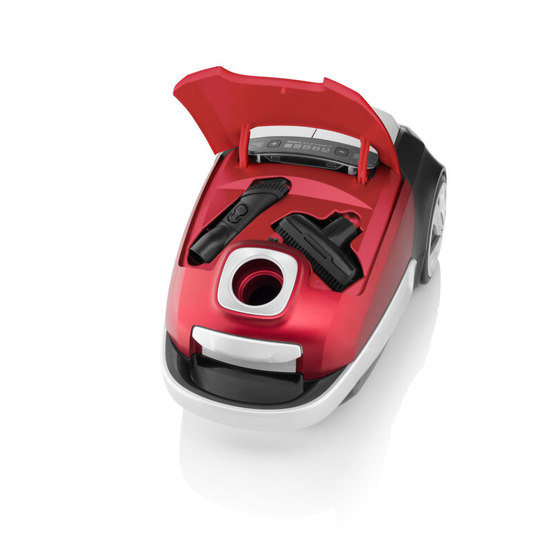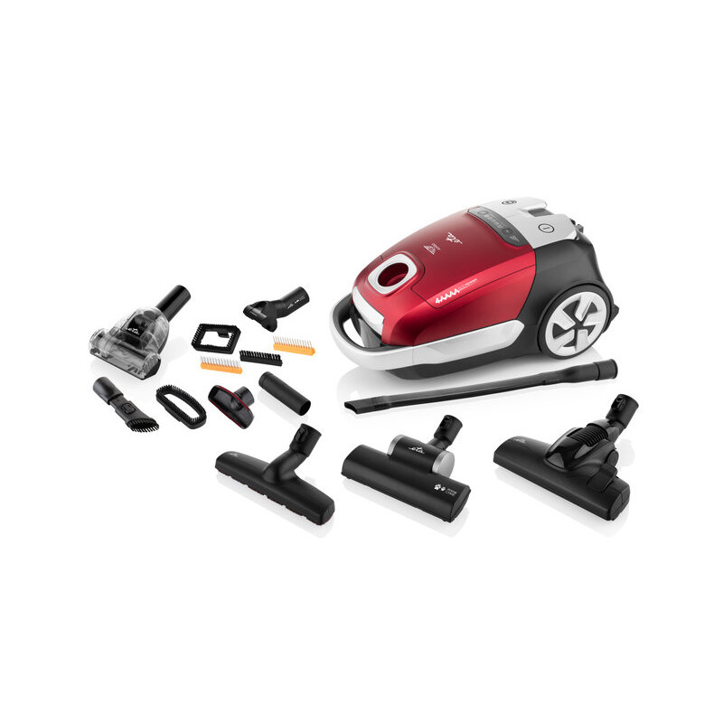 Vreckový vysávač so širokým otvorom pre lepší sací výkon, ECO motorom, extrémne účinnou filtráciou a bohatým príslušenstvom vrátane nadstavca DermoPet.Štýlový vysávač ETA Adagio v modernom červeno-čierno-striebornom prevedení vás ohromí vysokým výkonom. Vďaka ECO motoru je však jeho prevádzka veľmi energeticky úsporná. Teraz je navyše vybavený príslušenstvom s ľahko ovládateľným systémom zácvakov a väčším prepojovacím priemerom, ktorý zaistí silnejší prietok vzduchu a tým aj lepší sací výkon. Ako príjemný bonus je veľmi tichý chod vysávača.Vďaka extrémne účinnej filtrácií je navyše vhodný aj do domácností s alergikmi.