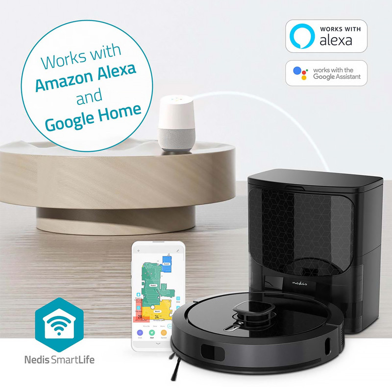Tento inteligentný robotický vysávač 3 v 1 dokáže zametať, vysávať a vytierať váš domov, keď robíte niečo iné, alebo dokonca aj keď nie ste doma. Jednoducho ho pripojte k domácej sieti Wi-Fi a ovládajte ho prostredníctvom aplikácie Nedis SmartLife (iOS a Android) alebo tlačidiel na samotnom robote. Podporuje aj hlasové ovládanie pomocou Alexa a Google Assistant.